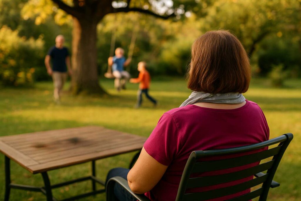 Cette douleur, qui semblait parfois venir de nulle part, comme si quelqu’un enfonçait un couteau dans l’articulation… ne m’a pas seulement déstabilisée, elle m’a aussi vraiment fait peur. Peur de tomber. Et cette peur a déterminé tout mon quotidien – et honnêtement, tout le monde autour de moi ».